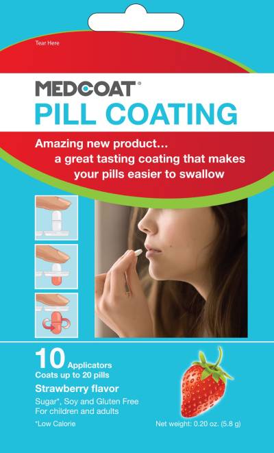 MEDCOAT covers pills and capsules with a coating camouflaging the bad taste. It’s sugar, soy, and gluten free. The special coating applicator is easy to use and can work on any size shaped pill or capsule.
